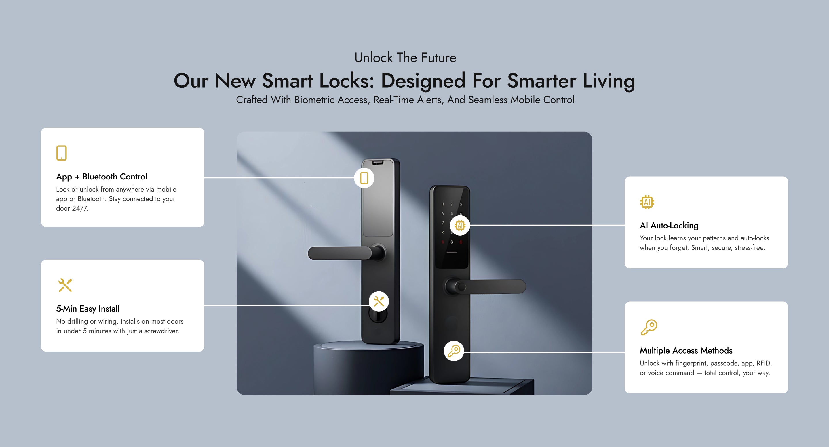 Smart door locks that secure your home, rental, or office all from your phone.